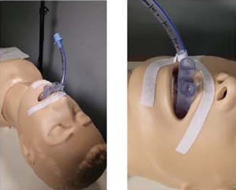 【装着例では挿管チューブを右口角に設置していますが、この位置に限定されるものではありません。正中での使用も可能です】