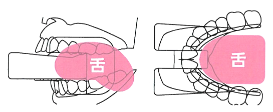 舌を歯列内側に保護し、歯列内側で安定した留置可能